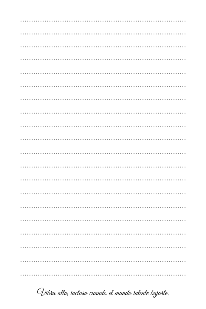 Este cuaderno Vibra Alto es más que un simple espacio para escribir; es un compañero de viaje en tu camino hacia el crecimiento personal y la vibración positiva. Con 50 páginas en blanco, diseñadas para que expreses tus pensamientos, metas y sueños, cada página cuenta con una frase inspiradora que te acompañará y te motivará a mantenerte enfocado en tu desarrollo y bienestar.